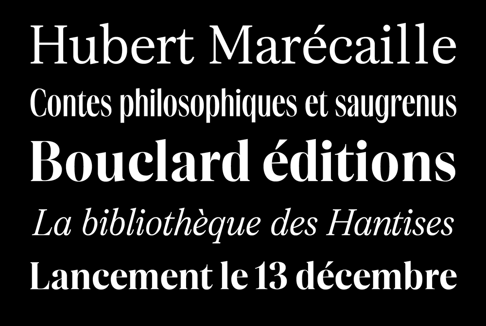 Afin d’avoir une flexibilité et une liberté de ton, j’ai imaginé Bouclard comme une « super-famille », c’est-à-dire que j’ai créé des variantes à partir d’un même squelette, d’une même logique de design. Le but est donc d’apporter une cohérence visuelle à la revue tout en nous permettant de jouer sur des niveaux de lecture et des tons différents.