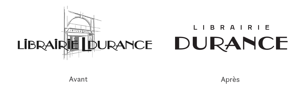 Le nouveau logo met en exergue le nom « Durance » en replaçant le terme « librairie » au second plan. Le « L » de l'ancien logo pour « Léon » Durance (le fondateur) est supprimé pour plus de clarté. Le lettrage est redessiné pour lui donner plus de force tout en conservant son aspect art nouveau.